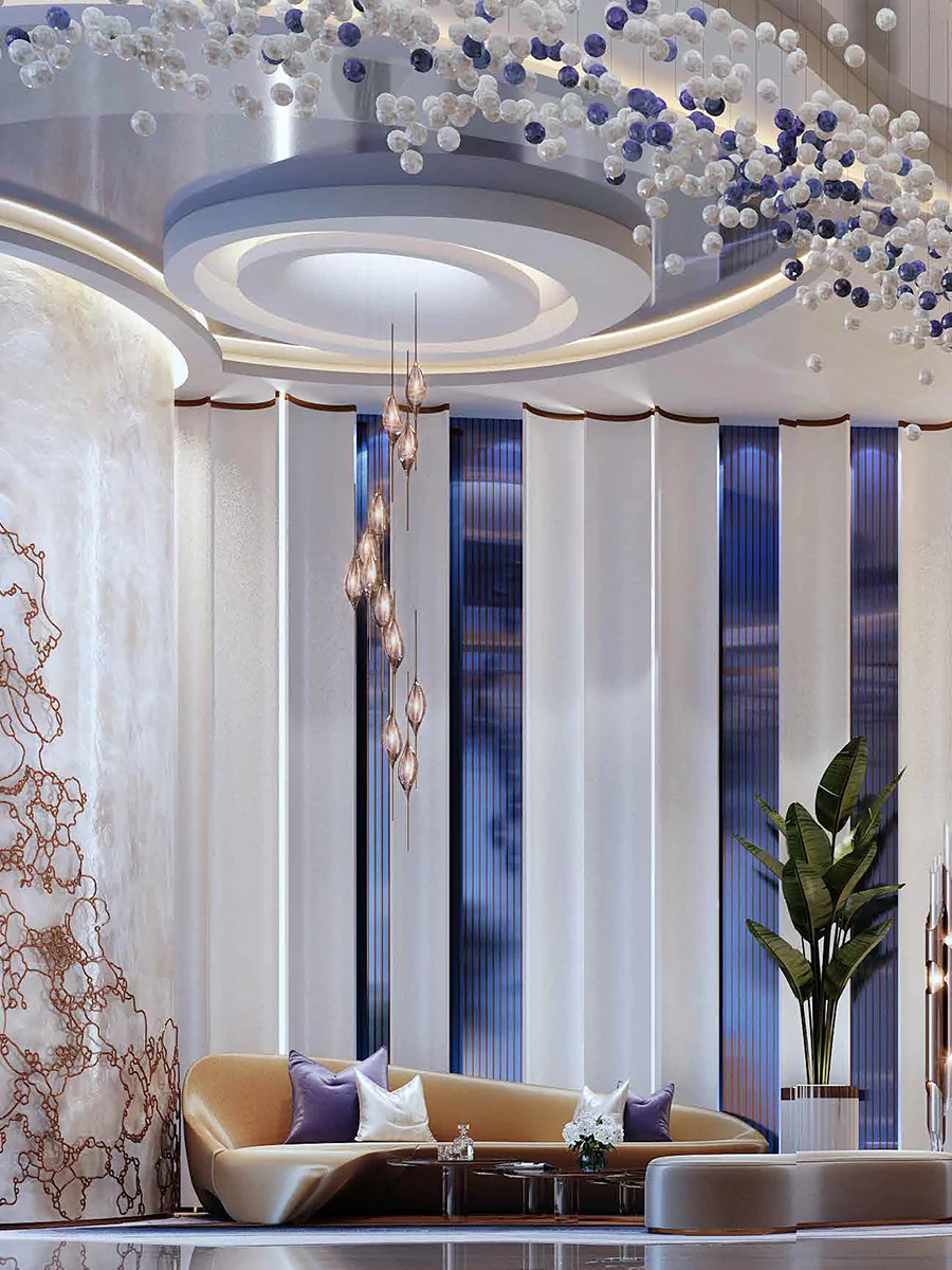 SHELL-SHAPED WAVES POOL WITH BLUE PEARLS UNDERWATER