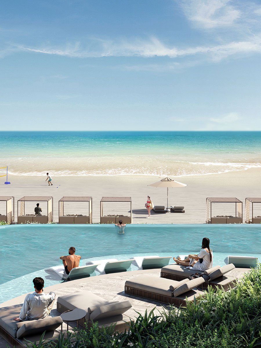 La Mer By Elie Saab comprises three distinctive branded towers situated on Al Marjan Island. This luxurious development portrays shoreline living with its unparalleled blend of bespoke and architectural finesse. Each tower embodies the visionary elegance synonymous with Elie Saab, offering residents a bespoke lifestyle experience characterized by panoramic views of the azure Gulf waters and meticulously crafted interiors.