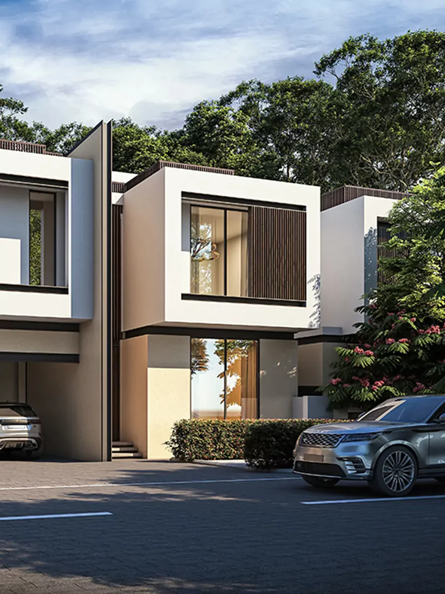 An exquisite abode with a niche set of exquisite villas situated in the heart of an idyllic green luxury gated community that encompasses bouldering walls, exotic flower-patterned clusters, and tree-lined walkways. The size of each villa starts from 4900 sq. ft.